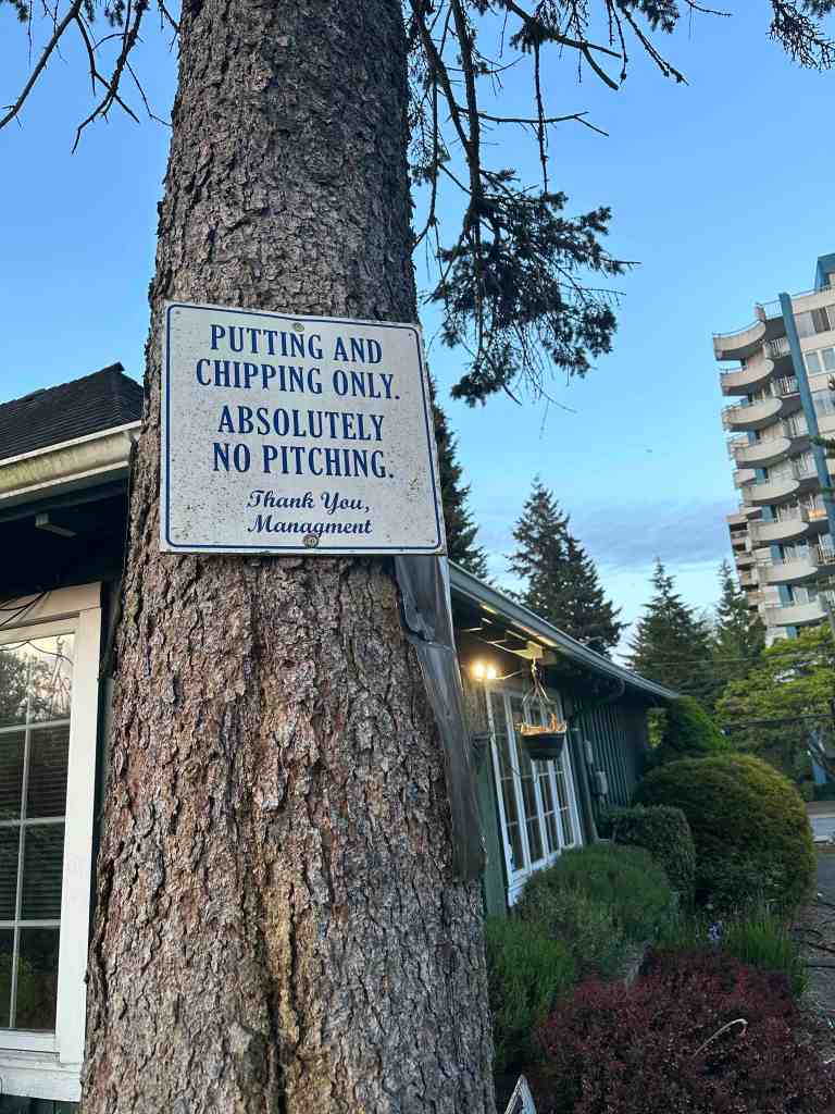 当然Golf就是源于英语世界,用英语描述的Golf场景一定是更准确的。而且很多的技术动作都使用了Golf专有的词汇- Jargon。例如我昨天学到的Coring是指球场维护中使用专用机械为果岭或者部分球道打孔通气(aeration)。对于这样的指示牌内容,其实对现场联系的人员来说很难准确区分这两种切球的方式。基本上我看到来这里练球的人员,都是靠自觉,我不知道是否所有的练习者都明确理解Pitching与Chipping的区别。
